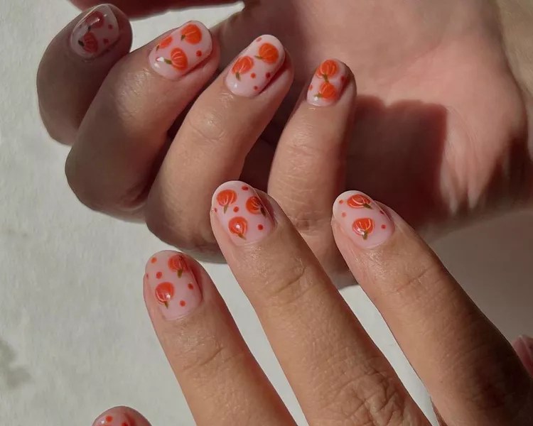 - Pumpkin nails: Use orange nail polish to create a pumpkin. You can add details with black or white nail polish.