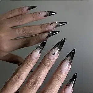 - Witch nails: Use black nail polish to create a witch. You can add details with green or purple nail polish.